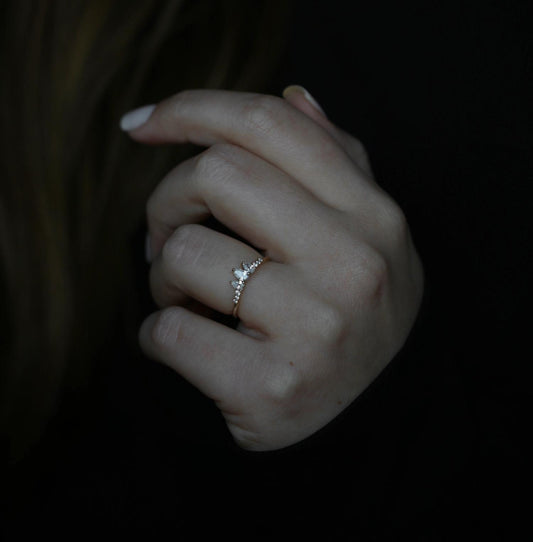 0.43 CT Pear & Round Multi Stones CVD EF/VS Diamond Wedding Band